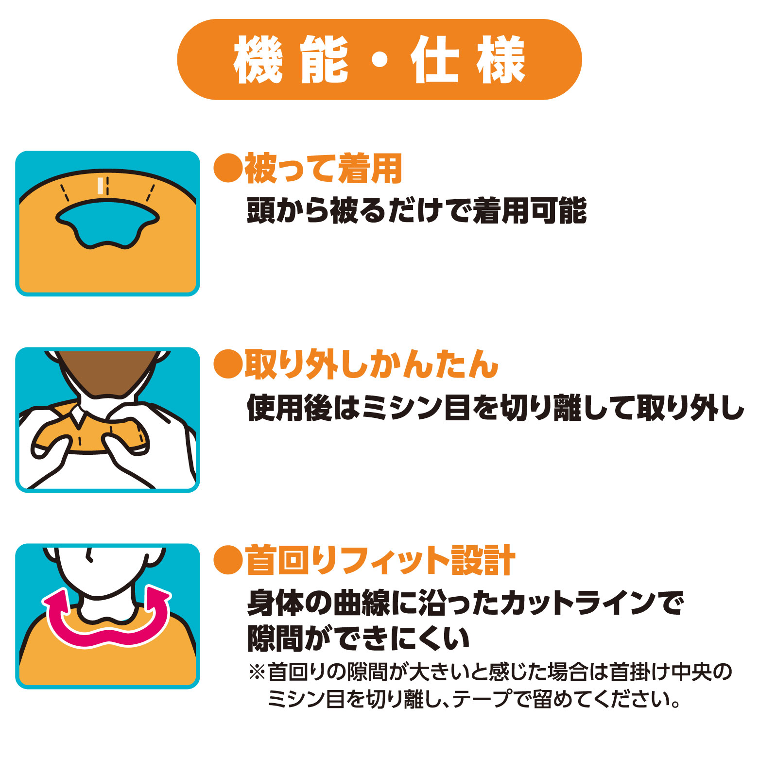 ※首回りの隙間が大きいと感じた場合は首掛け中央のミシン目を切り離し、テープで留めてください。