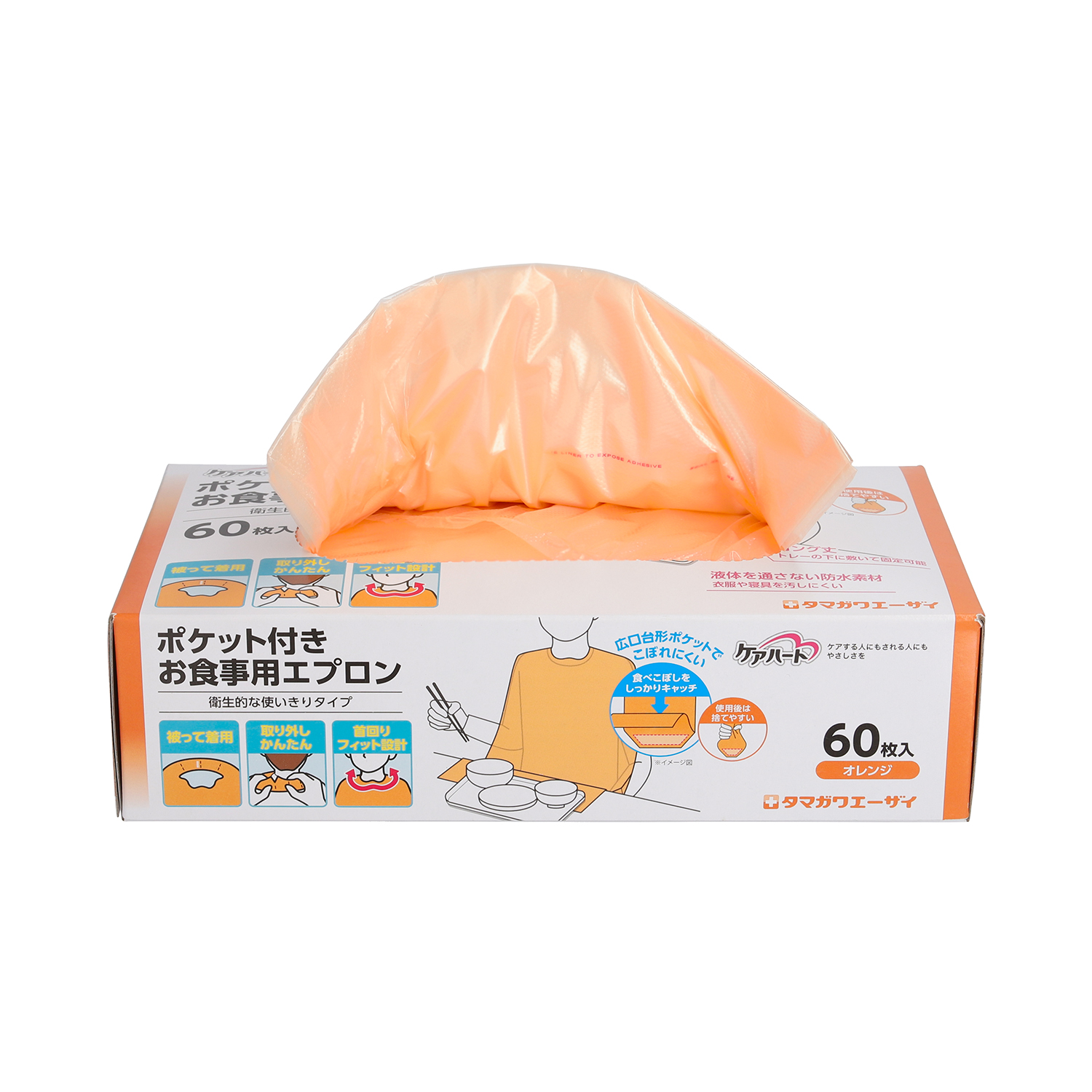 ケアハート ポケット付きお食事用エプロン 使いきりタイプ 60枚入 オレンジ